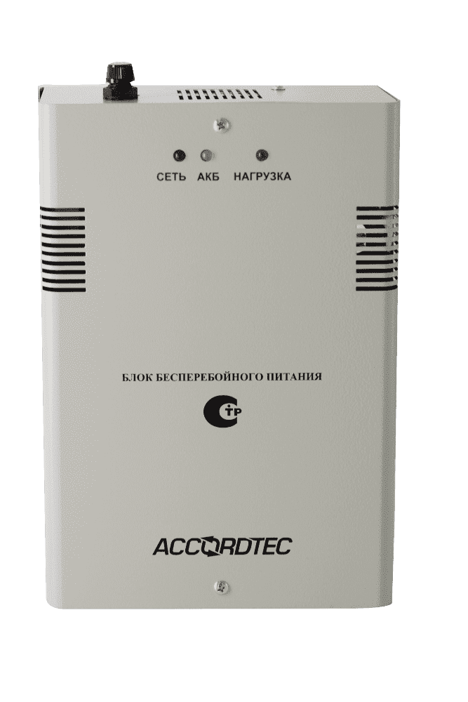 Блок бесперебойного питания AccordTec ББП-50 ТР исп.1 автоматически переходит в режим батарейного питания при обесточивании и возвращается в штатный режим после восстановления напряжения в сети.