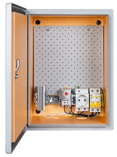 Климатический навесной шкаф. Комплектация: утеплитель из пенополистирола, замок 1 шт., ключ 1 шт., монтажная плата 1шт., гермовводы 2 шт., розетка 1 шт., автомат.выключатель 1 шт., термореле 1 шт., нагреватель Р=30 Вт 1 шт; IP66, t-раб. -55...+50°С; внутр.размер (ШхВхГ) 248х348х127 мм, внеш.габариты (ШхВхГ) 290х390х196 мм; вес 5 кг, цвет ral 7035 (серый)