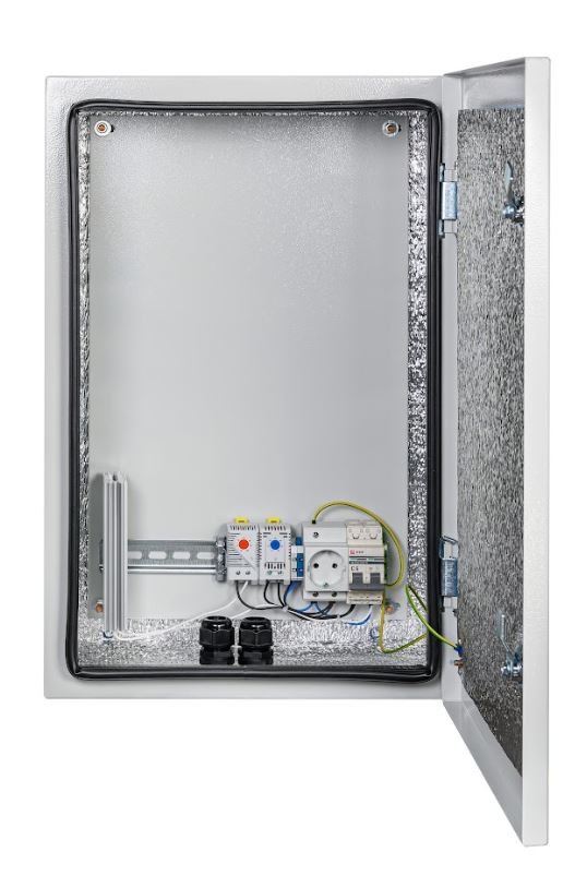 Шкаф климатический навесной с монтажной платой; 2 гермоввода (MG-25); внутренние размеры 377х577х220 мм (ШхВхГ); IP66, t-раб.-55…+50°С, 400х600х250 мм (ШхВхГ), 12.3 кг. Цвет серый. Комплектация: утеплитель из порилекса, замок 2 шт, ключ 1 шт, розетка 1 шт, автоматический выключатель, 6А 1 шт, клемма для подключения оборудования 2 шт, клемма заземления 1 шт, термореле 1 шт, реле предстарта 1 шт, нагреватель мощностью 100 Вт 1 шт.
