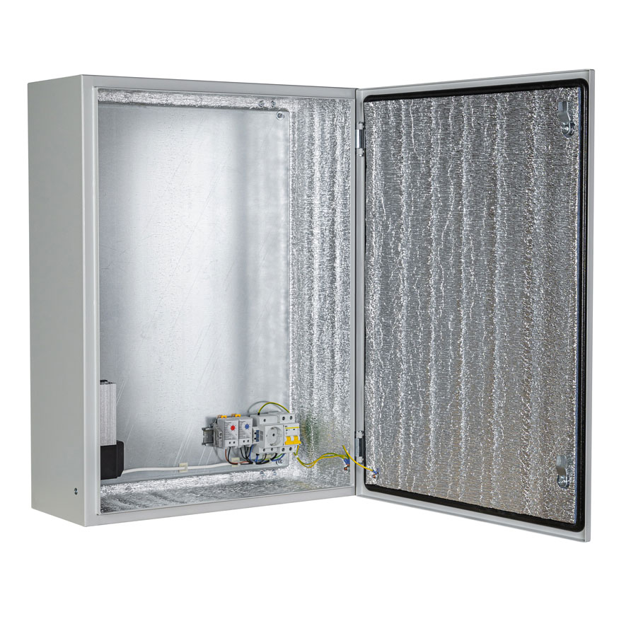 Утеплитель из порилекса НПЭ, замок 2 шт, ключ 1 шт, монтажная плата 1шт,люк под геромовводы 1 шт, гермовводы 5 шт, розетка 1 шт, автоматический выключатель 1шт,
