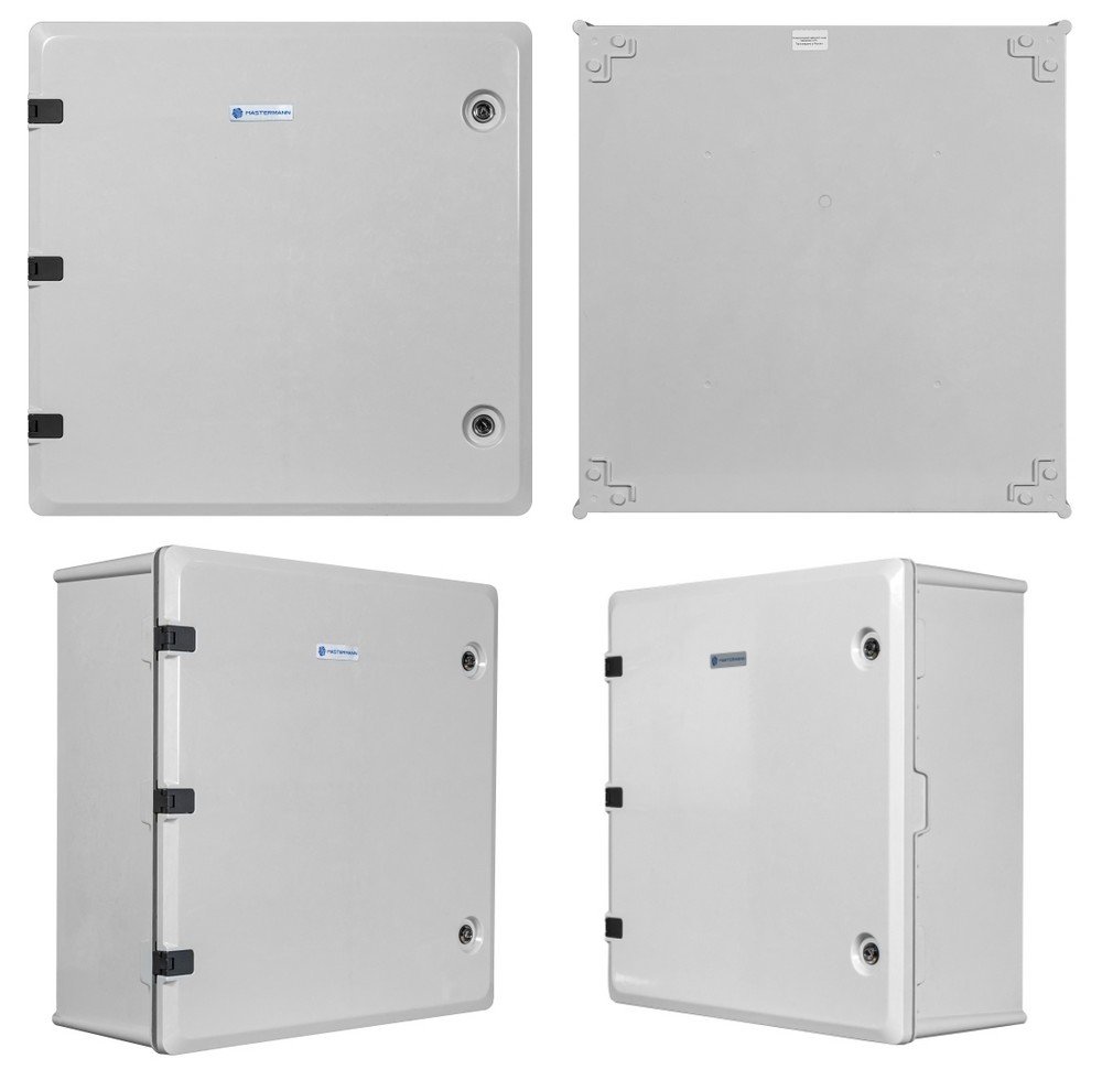 Шкаф монтажный композитный с монтажной платой и двумя замками; радиопрозрачный корпус; два гермоввода (MG-25); IP66, t-раб.-60…+80°С, 600×600×250 мм (Ш×В×Г), 10.8 кг.