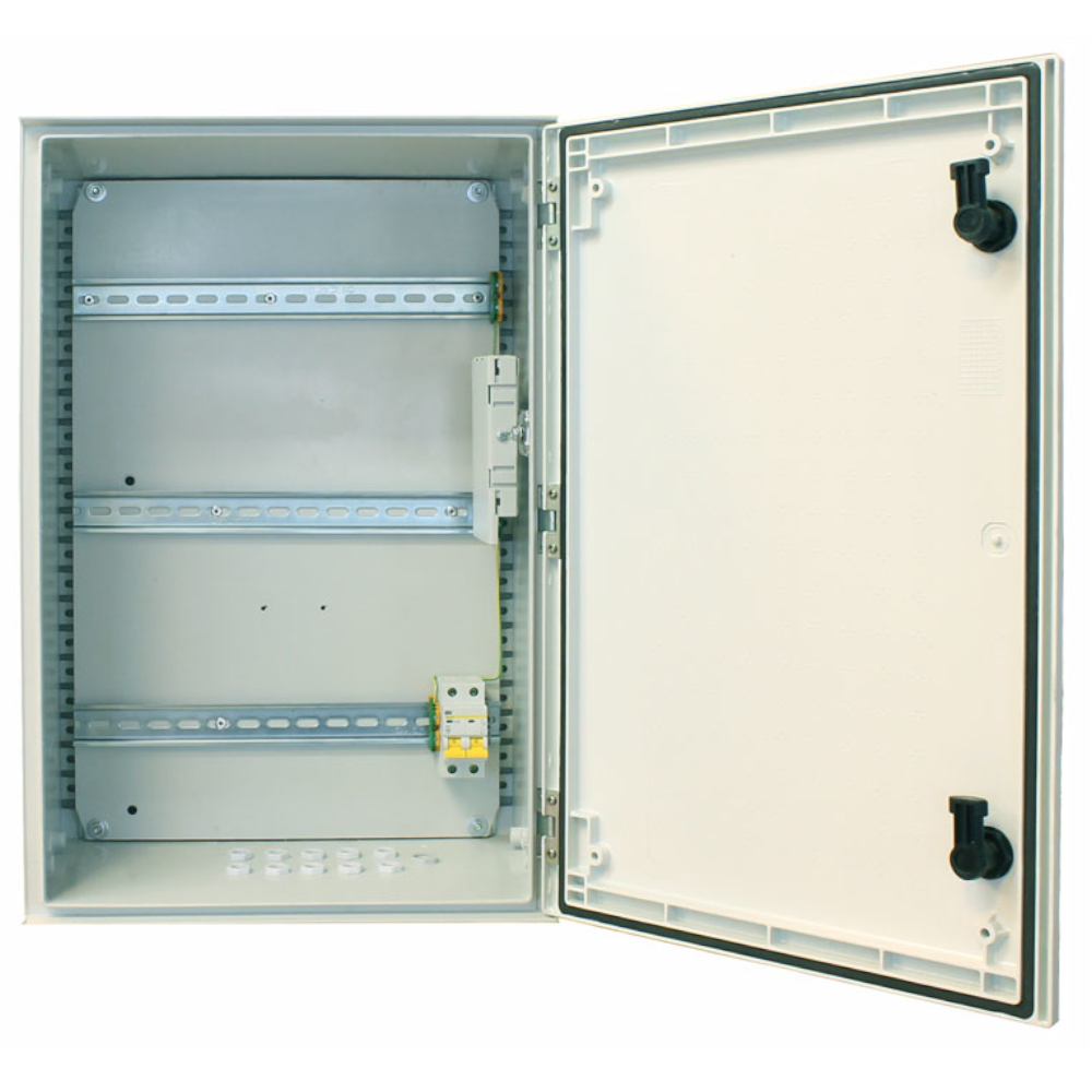 Корпус устойчив к УФ-излучению, защищен от механических повреждений по стандарту IK10, от влаги и пыли — по IP66, диапазон рабочих температур — -50 ºС... +50 ºС. Предусмотрены комплект гермовводов и автоматический выключатель (2Р, 10 A), срабатывающий при перегрузке или коротком замыкании.
