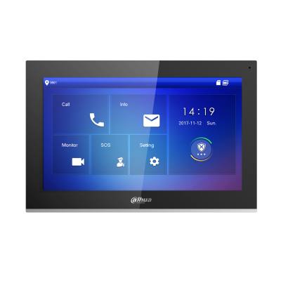 Данное устройство представляет собой цветной IP-видеодомофон с сенсорным экраном диагональю 10 дюймов и разрешением 1024x600. Устройство оснащено одним аудиовходом и одним аудиовыходом, а также шестью тревожными входами и одним тревожным выходом, что позволяет интегрировать его с охранными системами.